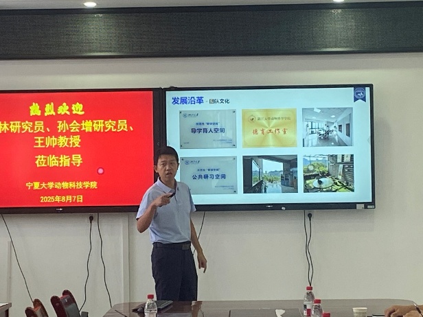会上,王帅教授分享了其团队在蠕虫对宿主肠道微生态及免疫调控模式方面的研究进展;孙会增研究员系统介绍了浙江大学奶业科学研究所的发展历程、研究方向与团队构成,并重点阐述了在粗饲料增效、乳品质量提升、新型饲用酶与微生物制剂创制应用及功能性乳酸菌开发等领域的研究成果;唐中林研究员则围绕家畜重要经济性状的遗传密码解析展开分享,为参会人员带来了启发。随后,马云教授详细介绍了肉视频
