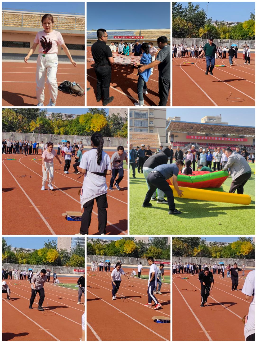怀远校区体育场内热闹举行。比赛过程中,各项趣味运动项目紧张激烈而又充满乐趣,教职工们以饱满的热情投入到铺路搭桥、手忙脚乱、踢毽子、快乐大冲关等趣味比赛项目中,现场加油声、欢笑声此起彼伏,气氛热烈而温馨。学院教职工们在运动会中均表现十分出色,并荣获了一项二等奖,也进一步激发了全院教职工的集体荣誉感和拼搏精神。
