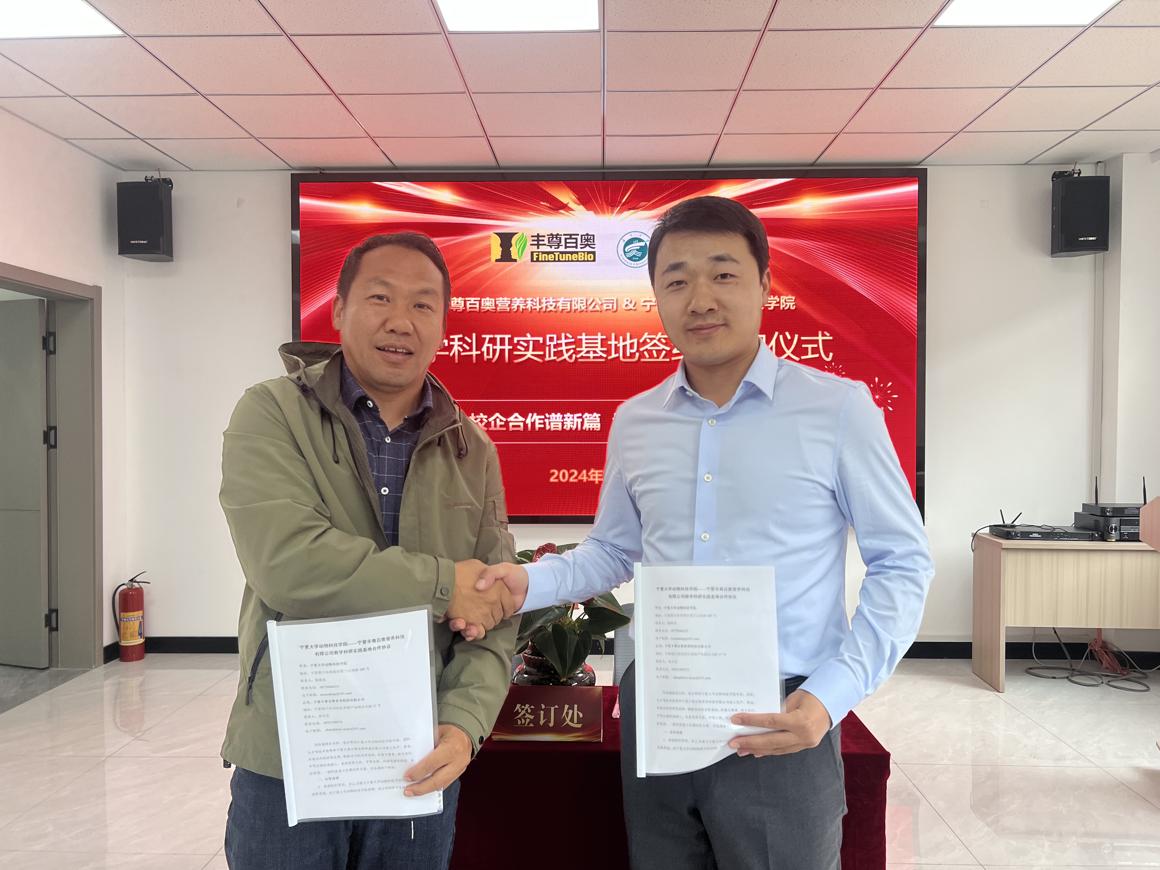 随后,我院徐晓锋副院长与公司路庆刚总经理签订教学科研实践基地合作协议。并由我院马云副院长为“宁夏大学动物科技学院教学科研实践基地”进行授牌。